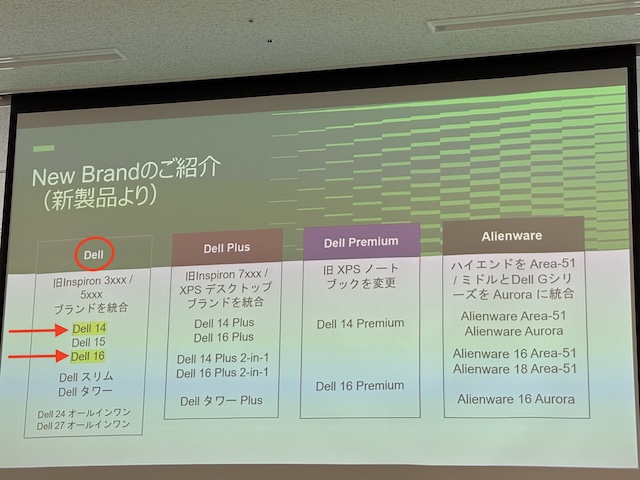 新ブランドのDell 14の製品型番の付け方について、説明がありました。