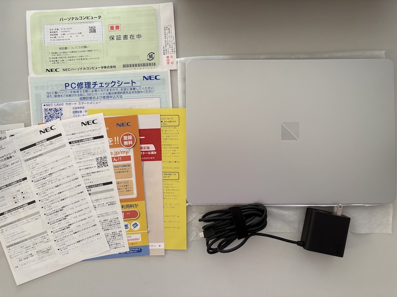 NECのノートPCLAVIE Direct SOL」本体と同梱物一式