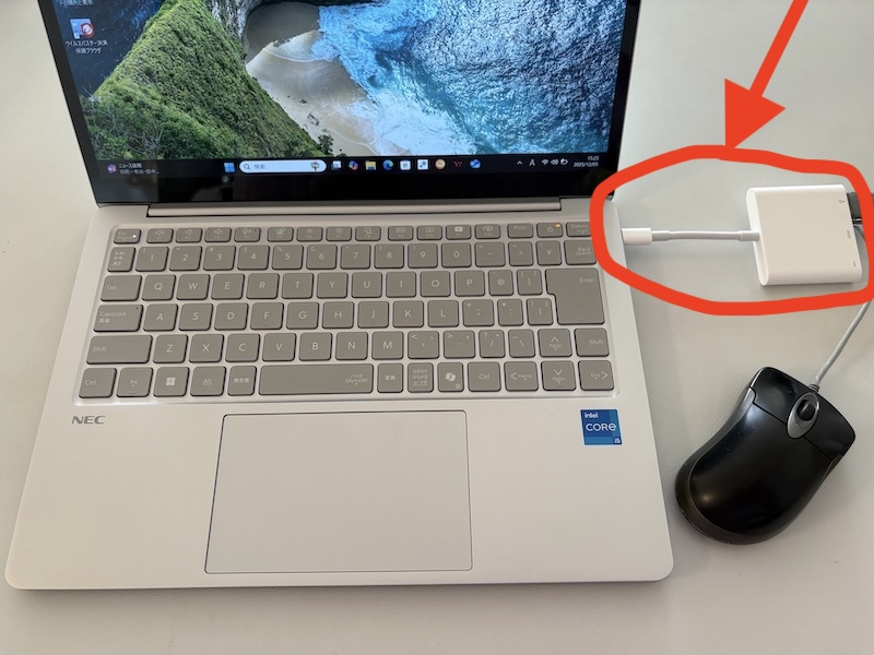 有線マウスを使う時は、USB-Cハブを利用しました。
